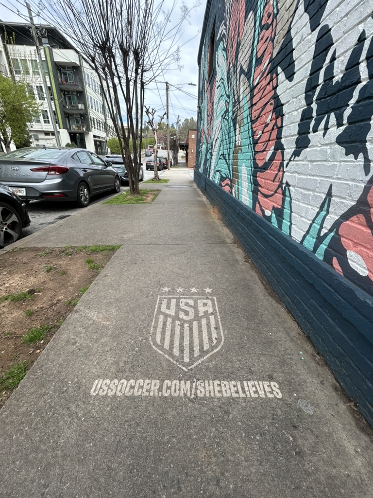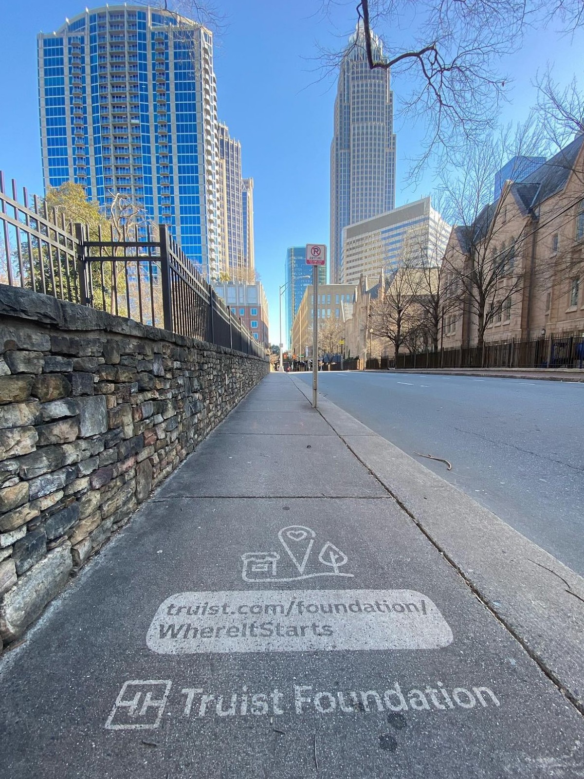 Using advanced stencil technology and high-pressure water, we strategically clean a message onto a dirty sidewalk